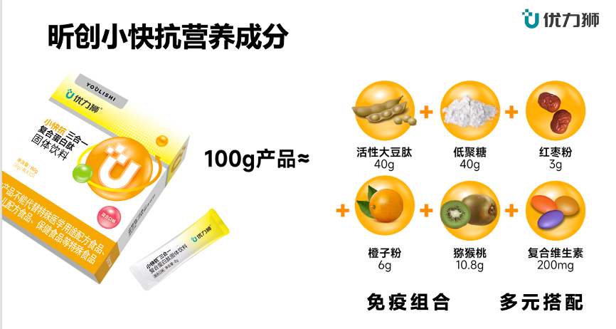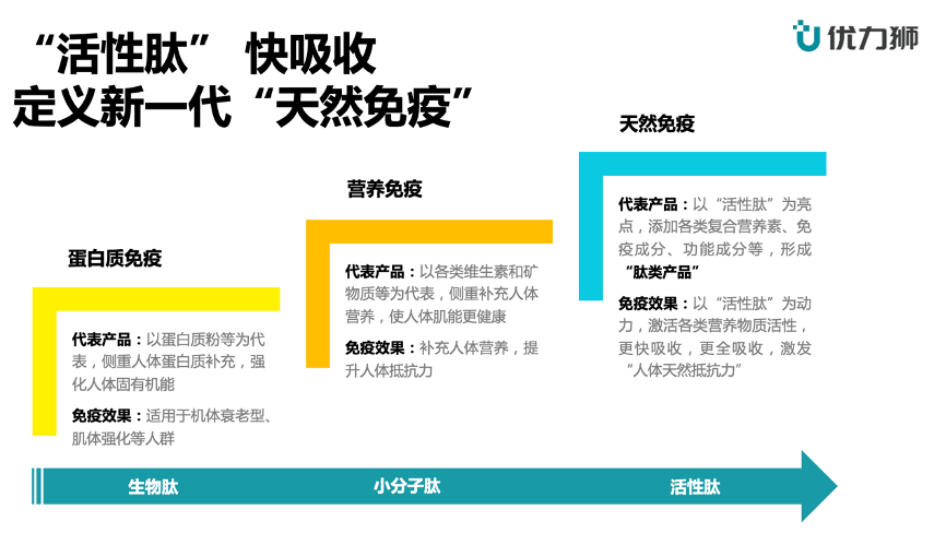 “優(yōu)力獅”定義天然免疫力新市場,以“活性肽”為亮點,添加各類復(fù)合營養(yǎng)素,激活更多營養(yǎng)成分,激發(fā)更多用戶活力,創(chuàng)造更多品牌認可度,是“肽產(chǎn)品”的新一代升級,更是以“活性肽”激活人體天然免疫”的新一代升級。