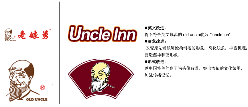 1)英文改進:將不符合英文規范的 old uncle改為“uncle inn”。