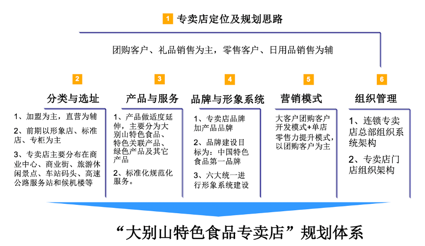 積極建設(shè)“數(shù)字化品牌專(zhuān)賣(mài)店”,明確大別山特色食品專(zhuān)賣(mài)店整體規(guī)劃,前期以團(tuán)購(gòu)客戶(hù)、禮品銷(xiāo)售為主,強(qiáng)化政務(wù)市場(chǎng)、商務(wù)市場(chǎng)的禮品團(tuán)購(gòu)市場(chǎng)拓展,積極招募團(tuán)購(gòu)代理商及“渠道合伙人”,建立健全“大別山品牌專(zhuān)賣(mài)連鎖體系”。