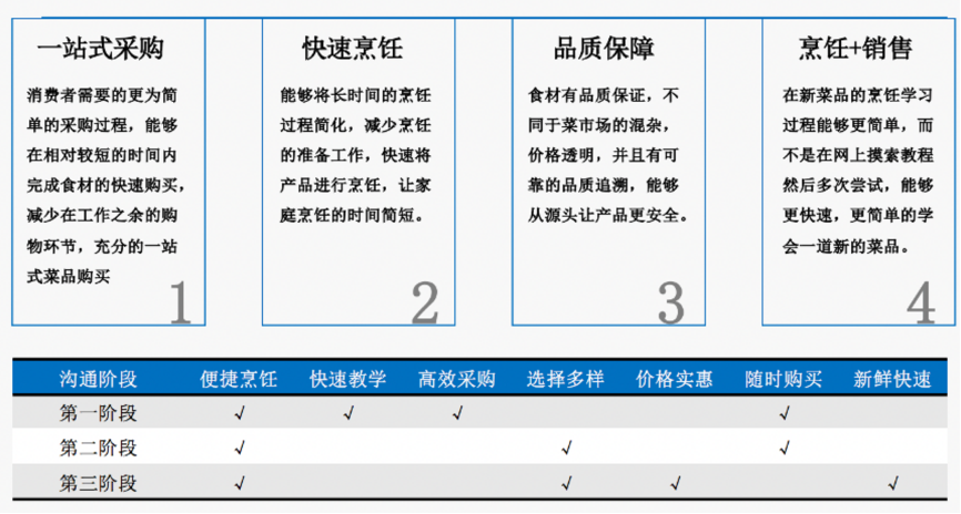 “用戶價值定位”:都市菜園的“用戶價值定位”在于明確“美好廚房生活”的品牌用戶價值,以“融入你我”的品牌姿態強化品牌溝通,真正以構建“美好廚房生活”為導向,強化生鮮新零售的“廚房美食”所在; 中后期發展企業福利市場。
