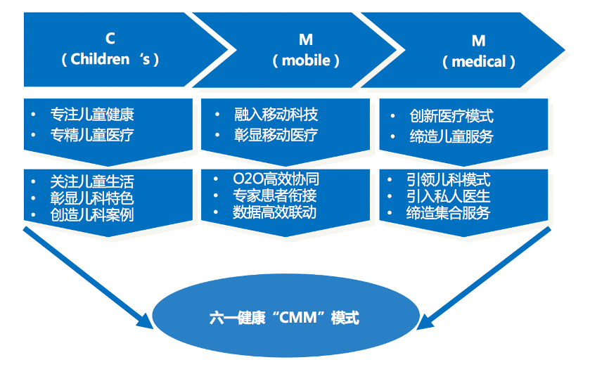 “六一健康CMM”模式是基于兒童移動醫療服務及后續健康管理服務所推出的新模式,“兒童健康管理”是其核心所在,英文全名為是“Children’s mobil medical”,其專注兒童健康、專精兒童醫療,融入現代兒科移動醫療科技,彰顯專業化兒科移動醫療成果,創新兒童醫療模式、彰顯兒童移動醫療服務。