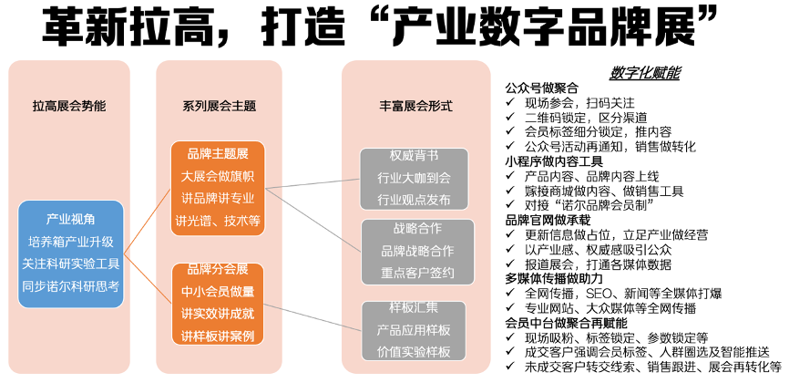 為了解決新科研品牌認知度的問題,項目組建立諾爾抓住線下行業展會的機會,打爆“行業展會”。