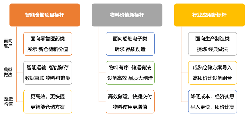 易飛迅積極打造“三大標(biāo)桿”,面對(duì)不同行業(yè),分別建立“智能倉(cāng)儲(chǔ)項(xiàng)目標(biāo)桿+物料價(jià)值新標(biāo)桿+行業(yè)應(yīng)用新標(biāo)桿”,以“三大標(biāo)桿”塑造品牌大價(jià)值。