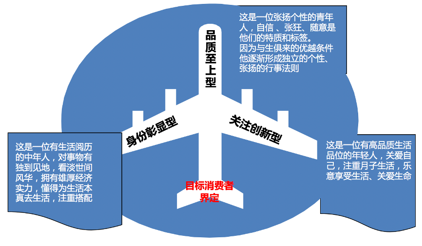 消費(fèi)者定位:根據(jù)“母嬰消費(fèi)人群”特點(diǎn),秉承公司“發(fā)展戰(zhàn)略規(guī)劃”,我們建議細(xì)分消費(fèi)者,推進(jìn)“一體兩翼”策略:以“品質(zhì)至上型”為主要客戶,同時注重“身份彰顯型”和“關(guān)注創(chuàng)新型”消費(fèi)者,“價格敏感性”不作為目前的目標(biāo)客戶