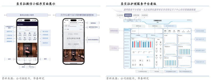 經(jīng)典案例:根據(jù)公司招股書、華泰研究等綜合資訊表明,圣貝拉面向 C 端消費者,打造了便捷的小程序服務入口,用戶可隨時查看服務詳情,數(shù)據(jù)實時更新,操作簡單直觀。