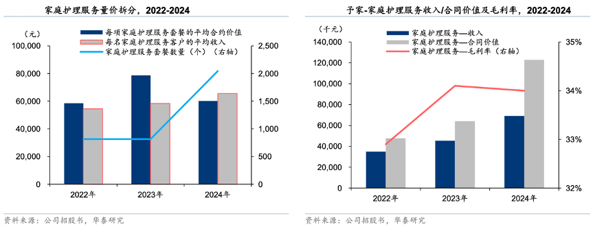 經典案例:根據公司招股書、公司公告、華泰研究等綜合資訊表明,作為家庭護理領域的領先品牌,予家服務場景(3-36 個月)是月子中心服務的自然延伸與場景遷移。其不僅配備自主培訓的年輕專業育嬰師團隊(截至 24 年,40 歲以下育嬰師占比 35%),還依托內部護理專家提供遠程客戶咨詢支持,形成“落地服務+遠程指導”的閉環體系。2024 年,單獨購買予家服務的 574 名客戶中,約 76%來自產后護 理服務的老客戶復購。